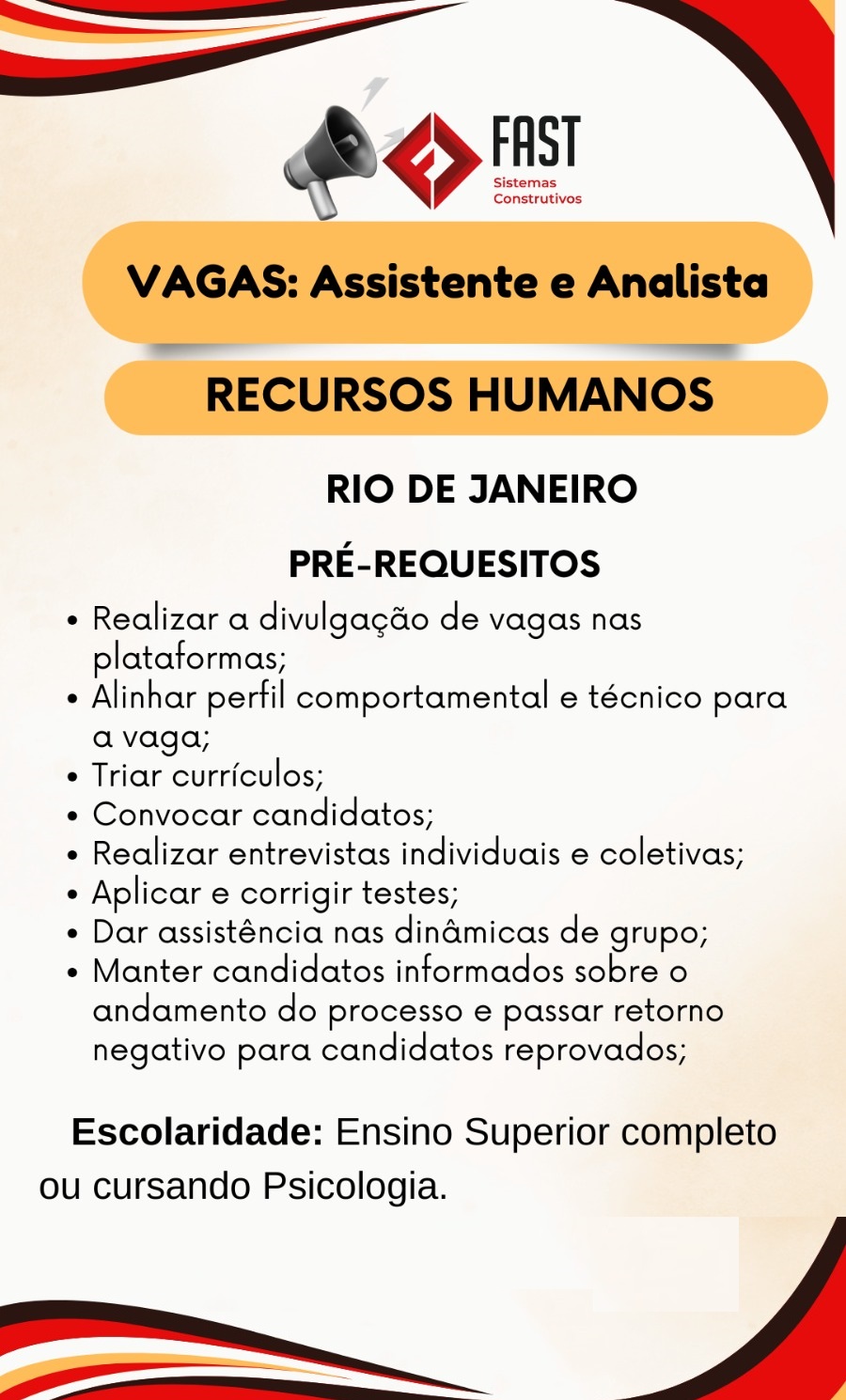 Requisitos: Ensino Superior completo ou cursando Psicologia.