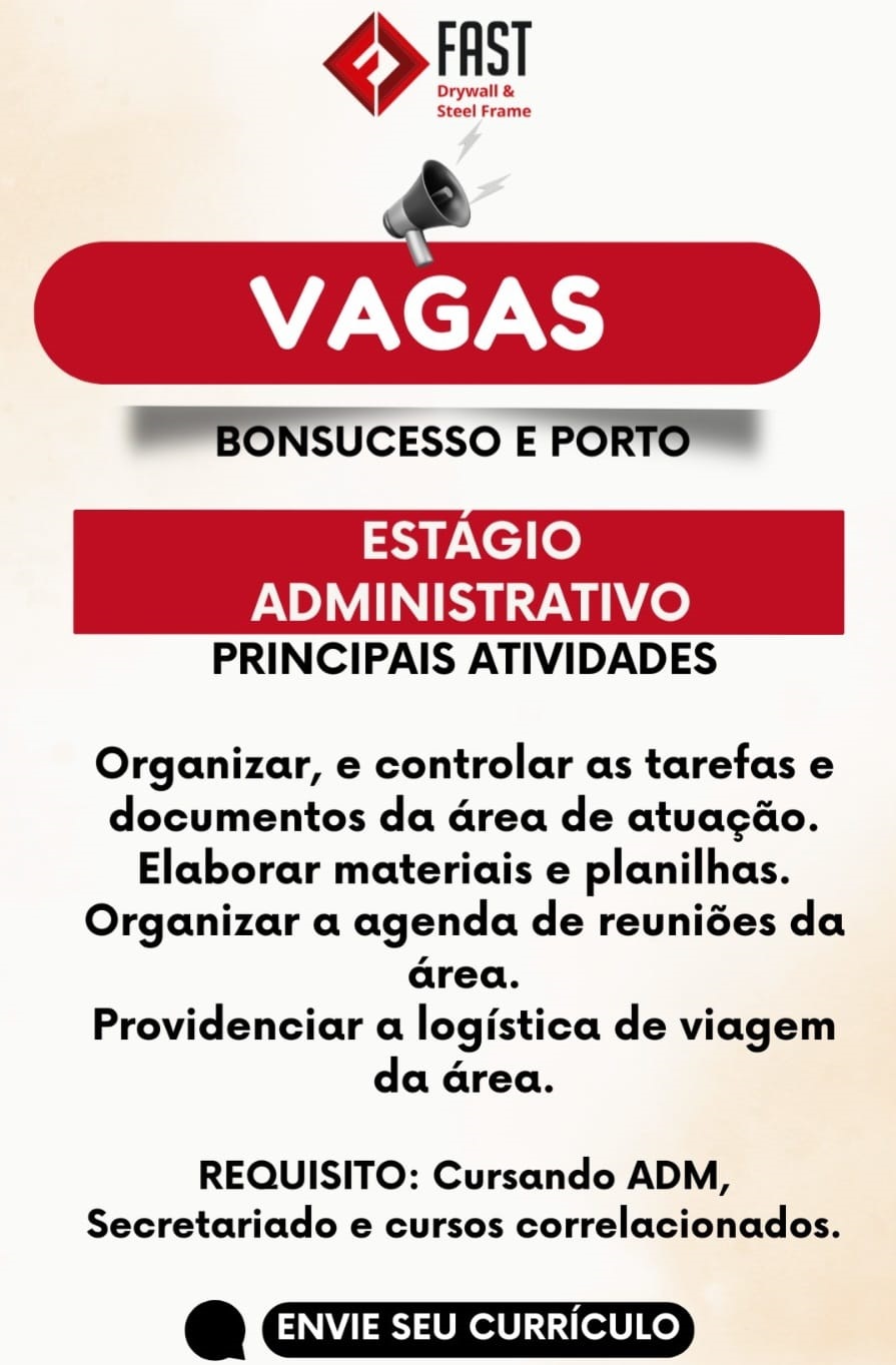 Cargos: ESTÁGIO ADMINISTRATIVO